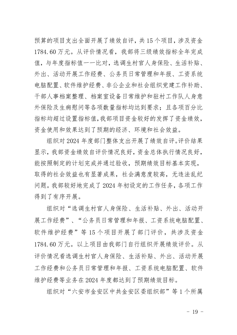 附件1:中共六安市金安区委组织部2024年度项目支出绩效自评清表.pdf