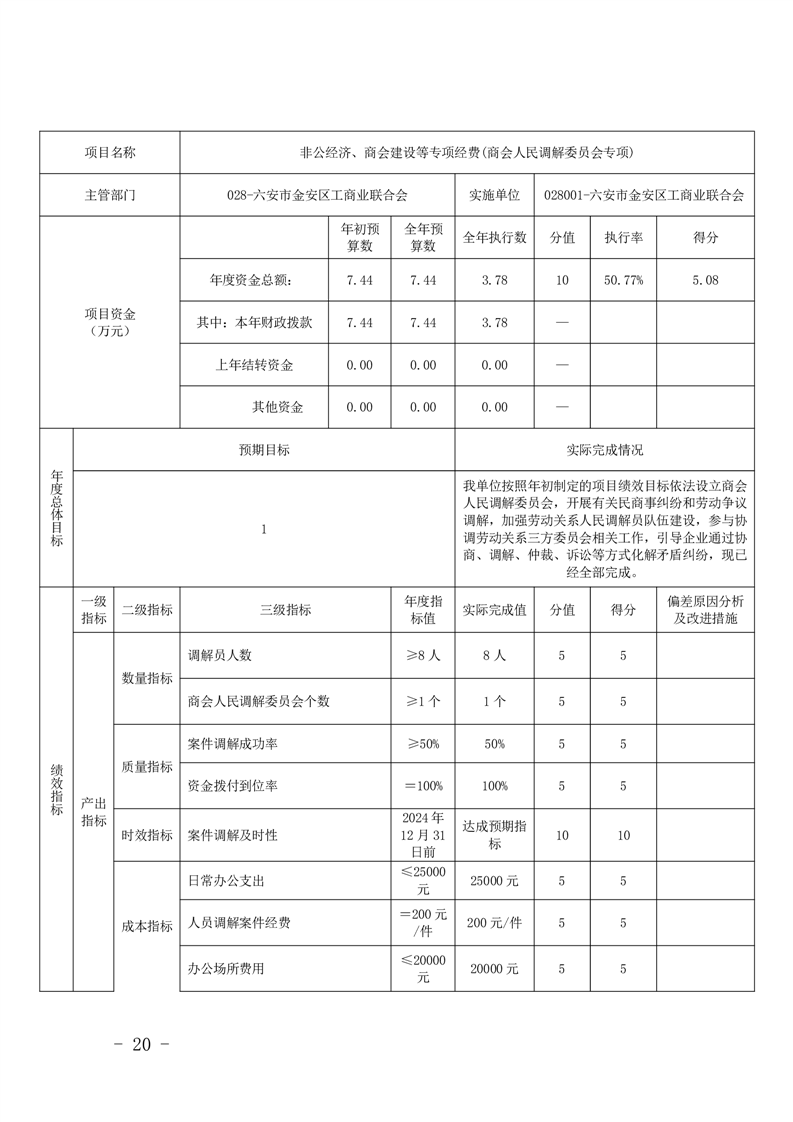 附件1:六安市金安区工商业联合会2024年度项目支出绩效自评表.pdf
