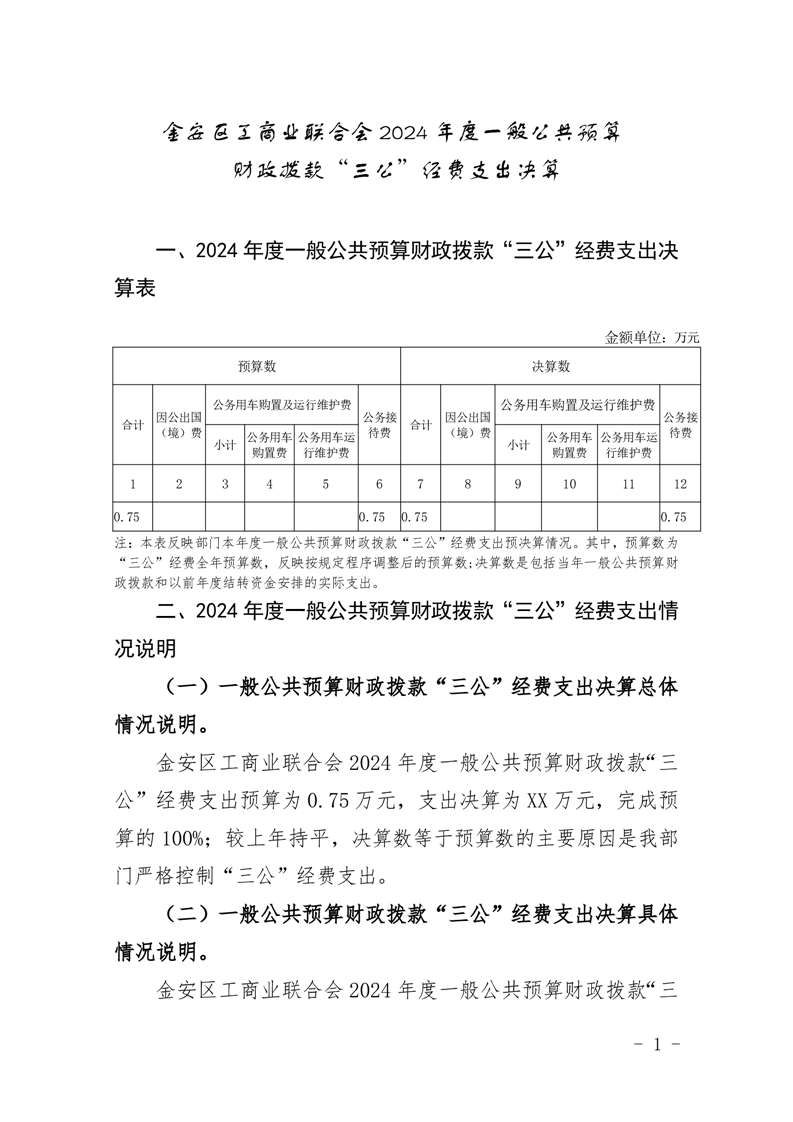 六安市金安区工商业联合会2024年“三公”经费决算公开