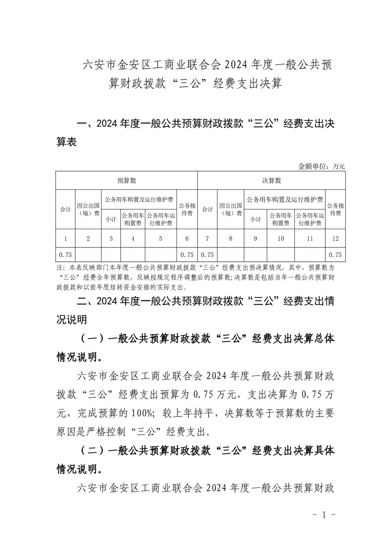 六安市金安区工商业联合会2024年度一般公共预算财政拨款“三公”经费支出决算