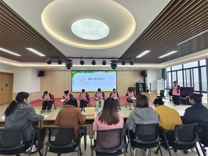 比赛流程清晰、环环相扣,以“以技赋能,护航成长——争做专业育儿守护者”为主题,采用笔试+实操双维度比拼模式。活动伊始,尤玉林园长作动员讲话,强调保育工作是园所发展的“基石”,鼓励选手们以赛展技、以赛交流,将专业精神融入日常工作。