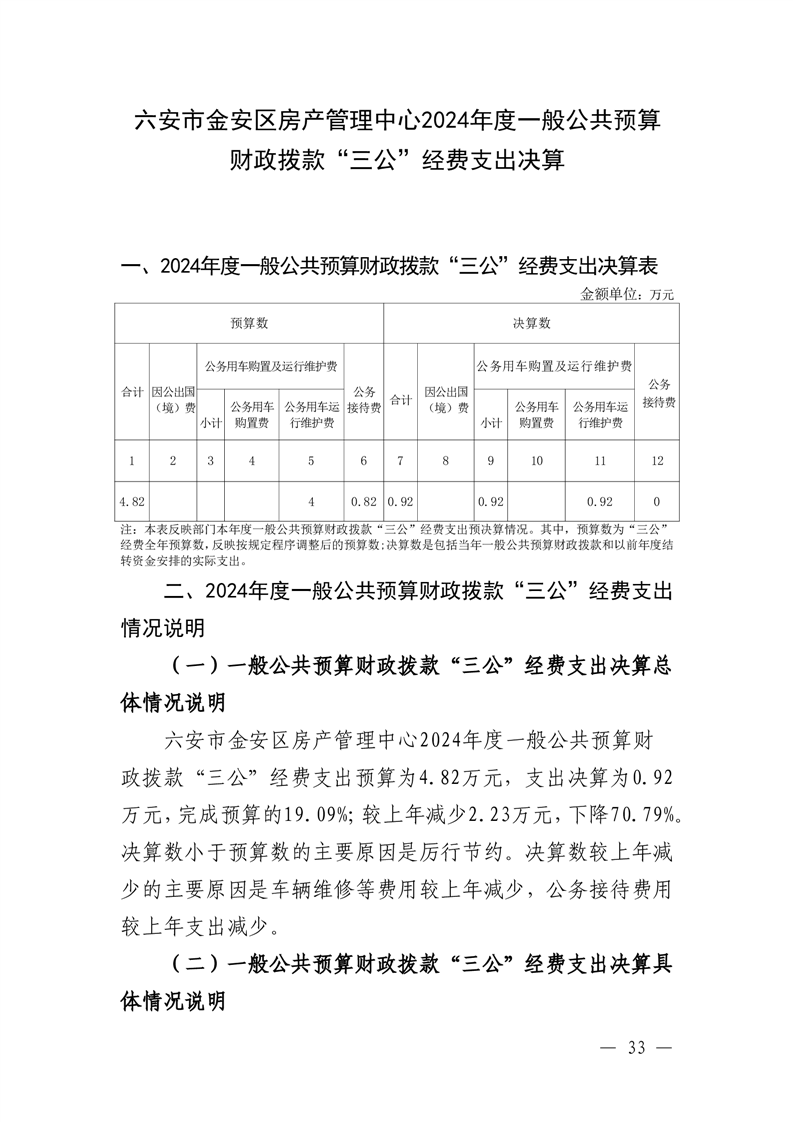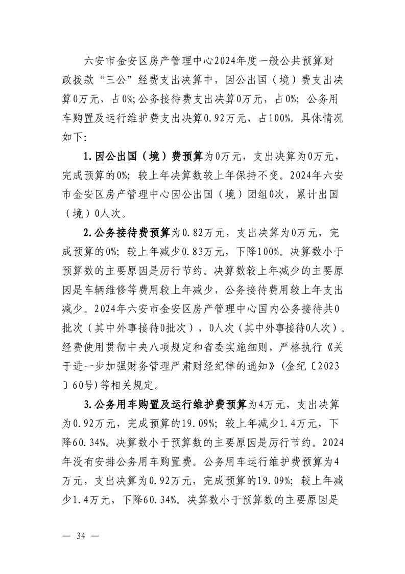 六安市金安区房产管理中心2024年度一般公共预算财政拨款“三公”经费支出决算.pdf