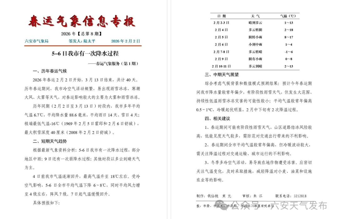 5-6日我市有一次降水过程,部分地区中雨;9日还有一次弱降水过程;其他时段以多云到晴天气为主。4日前我市气温逐渐回升,最高气温升至18℃左右。受冷空气影响,5-6日全市平均气温下降6~8℃,同时平均风力增至4级左右,阵风7级。7日起气温缓慢回升。