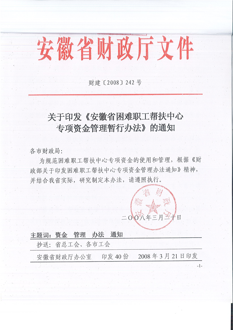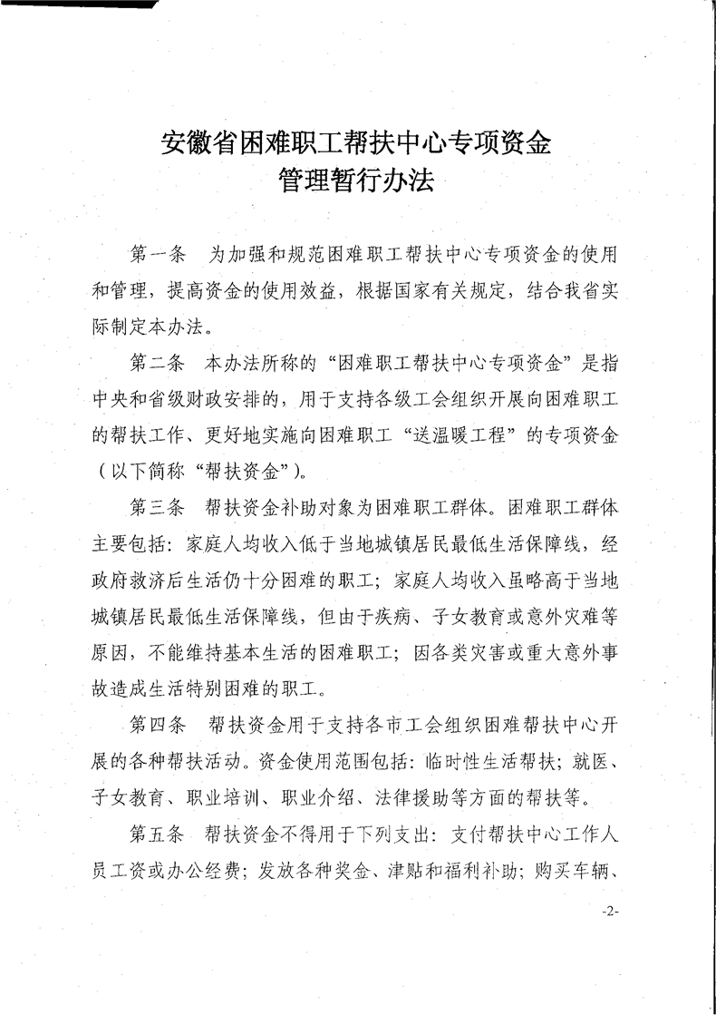 关于印发《安徽省困难职工帮扶中心专项资金管理暂行办法》的通知