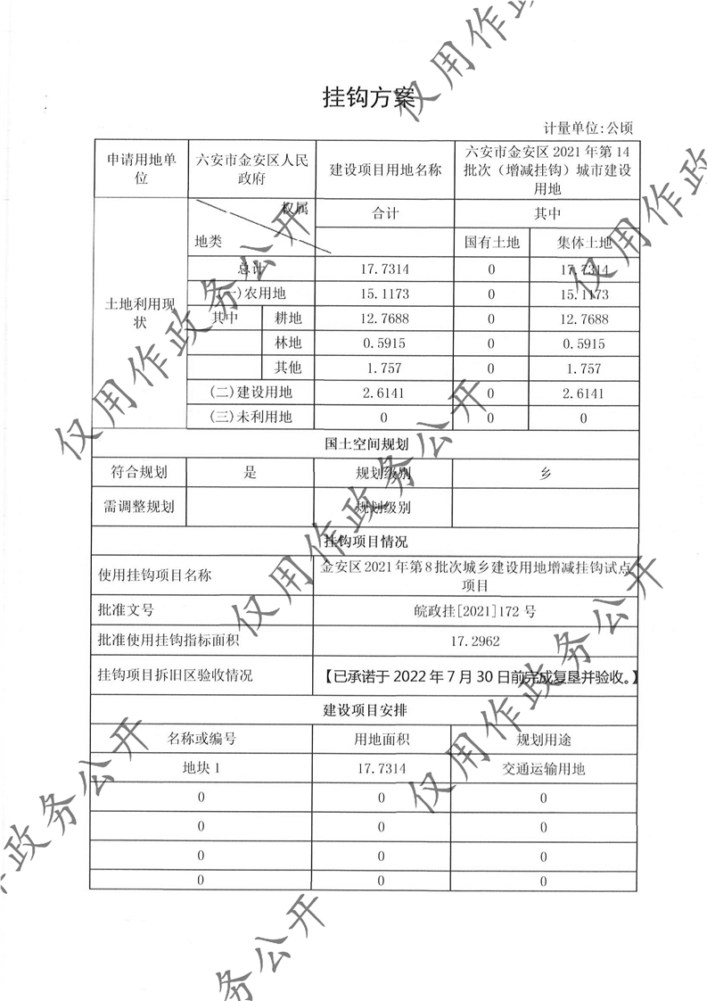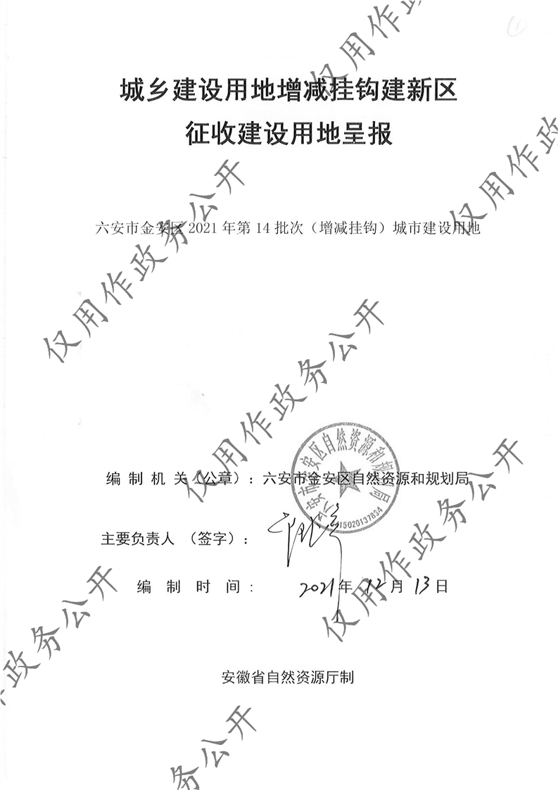 六安市金安区2021年第14批次(增减挂钩)城市建设用地呈报一书一方案