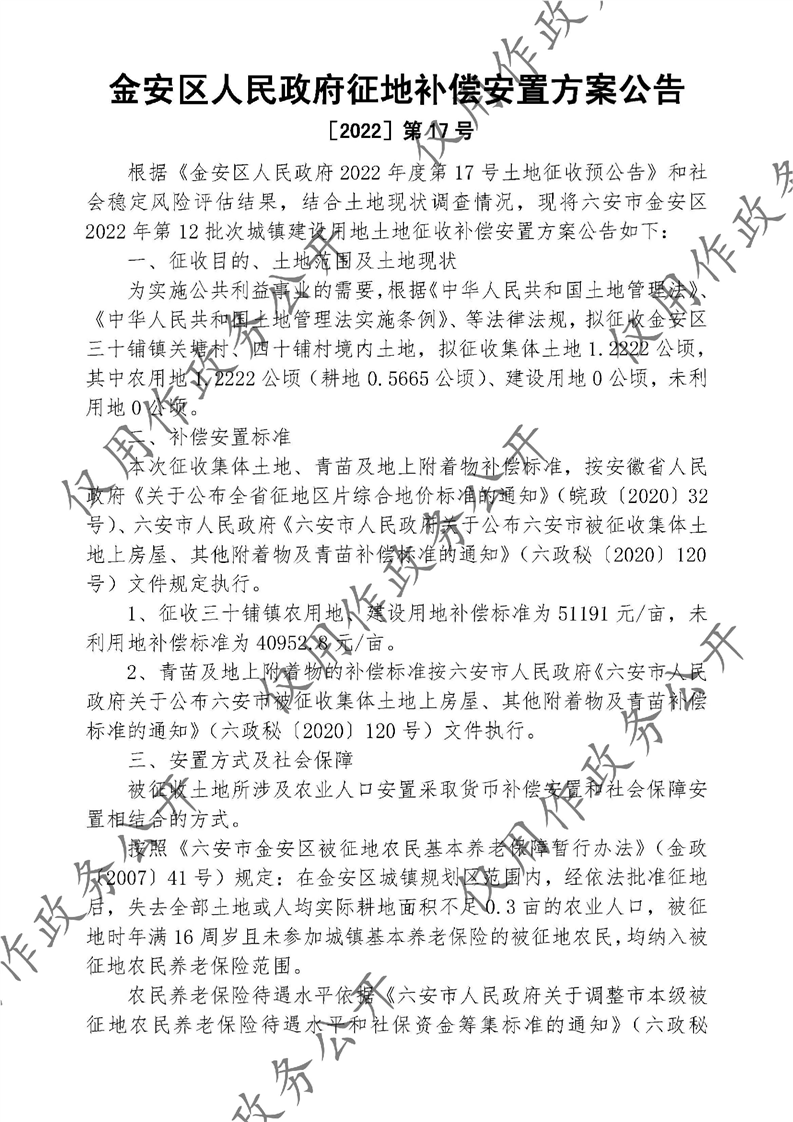 金安区2022年第12批次城镇建设用地土地征收补偿安置方案公告