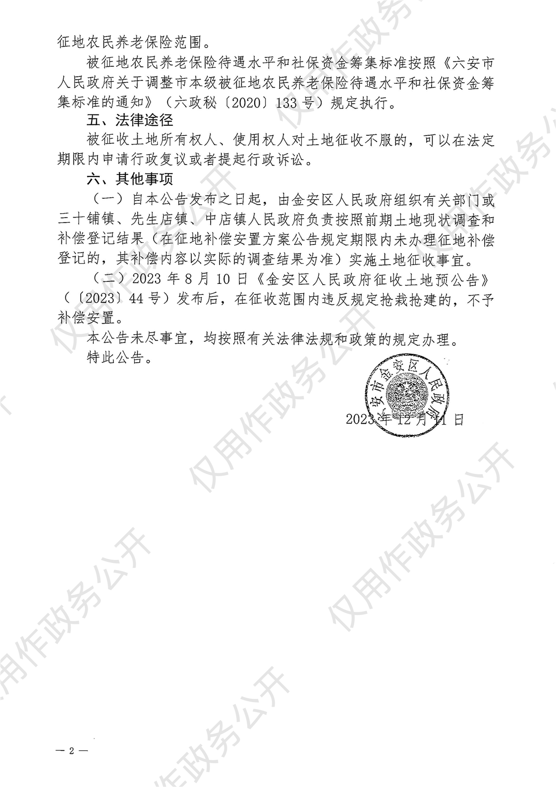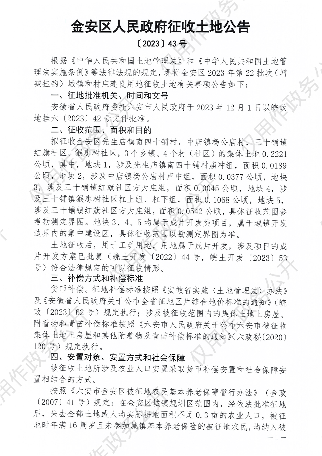 金安区人民政府征收土地公告(金安区【2023】第43号)