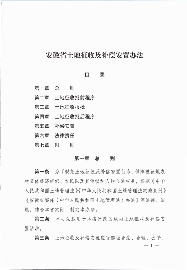 安徽省土地征收及补偿安置办法(2024年度最新)