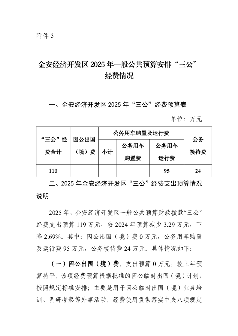 金安经济开发区2025年一般公共预算安排“三公”经费情况