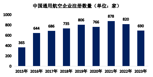 截至2023年底,全国获得通用航空经营许可证的传统通用航空企业690家,全国在册管理的通用机场数量达449个,通用航空在册航空器总数达3303架,通用航空全年共完成飞行137.1万小时。民用无人驾驶航空方面,截至2023年底,获得通用航空经营许可证,且使用民用无人机的通用航空企业19825家,全行业无人机拥有者注册用户92.9万个、注册无人机共126.7万架、有效无人机操控员执照共19.44万本,全年无人机累计飞行小时2311万小时。