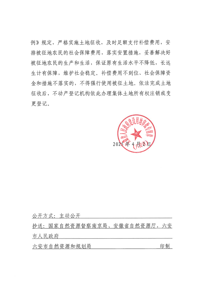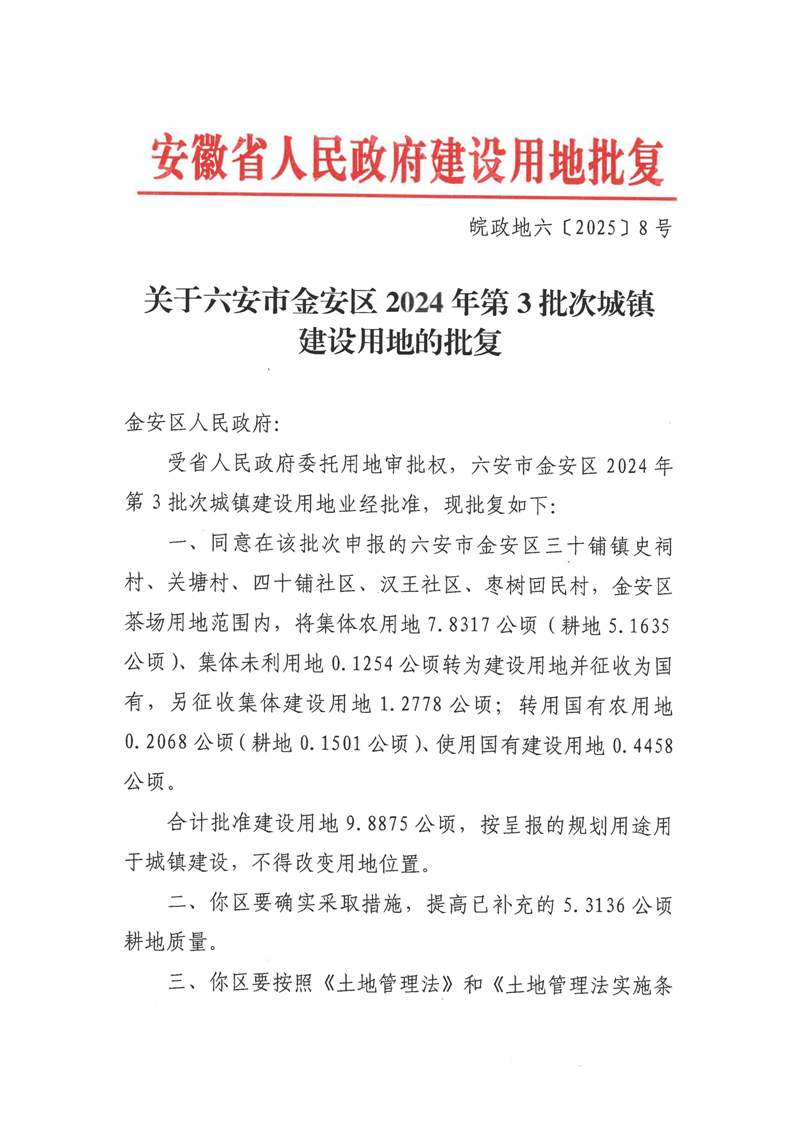 关于六安市金安区2024年第3批次城镇建设用地的批复