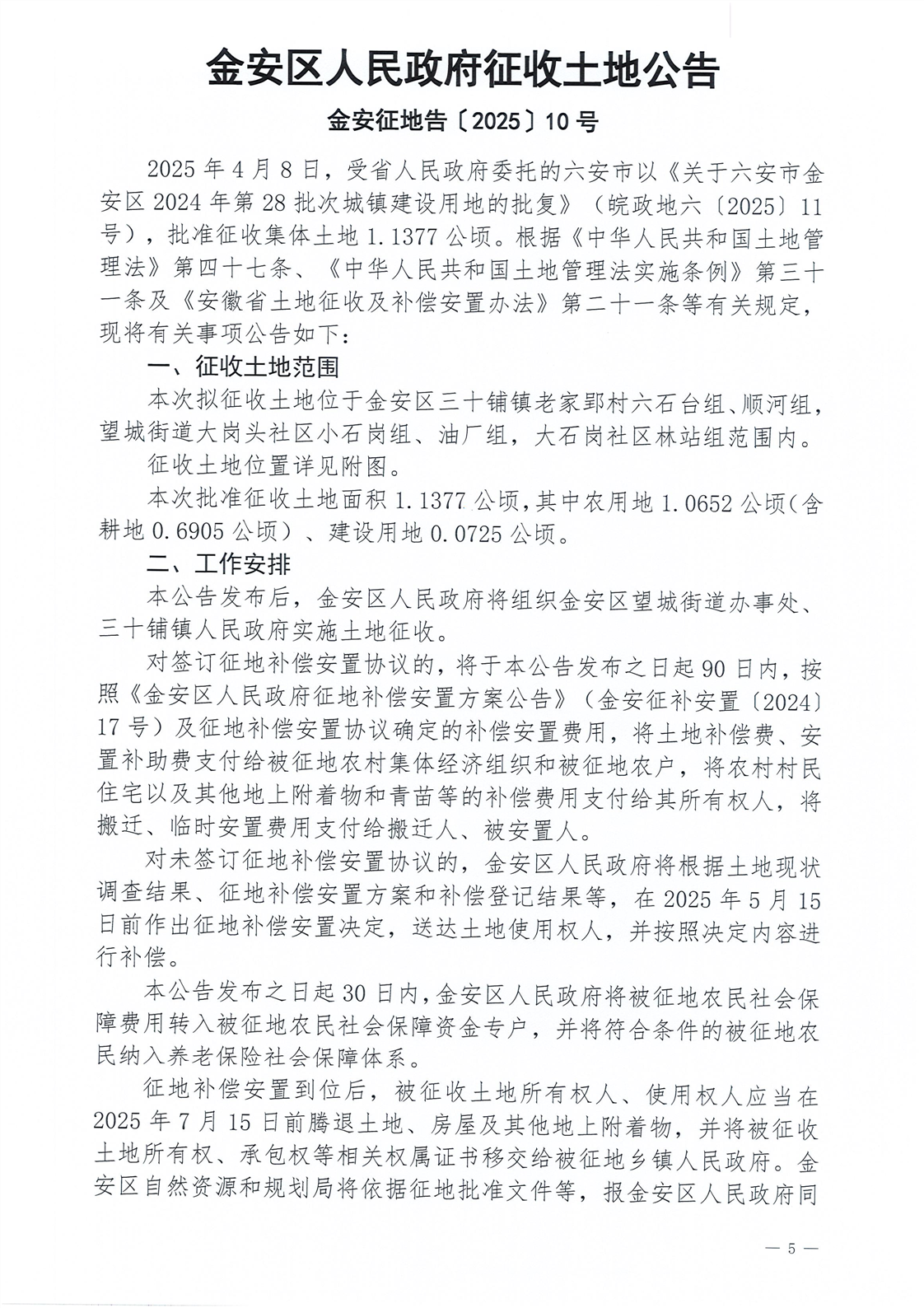 金安区人民政府征收土地公告(金安征地告〔2025〕10号)