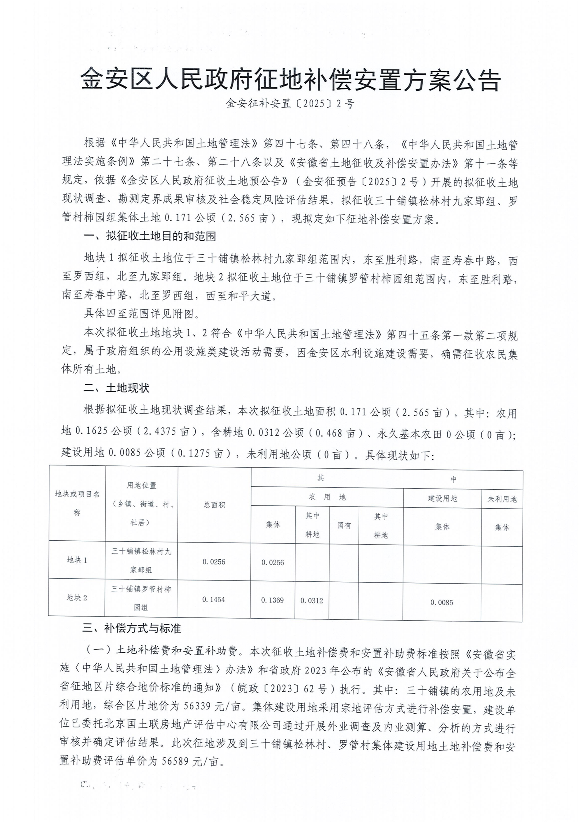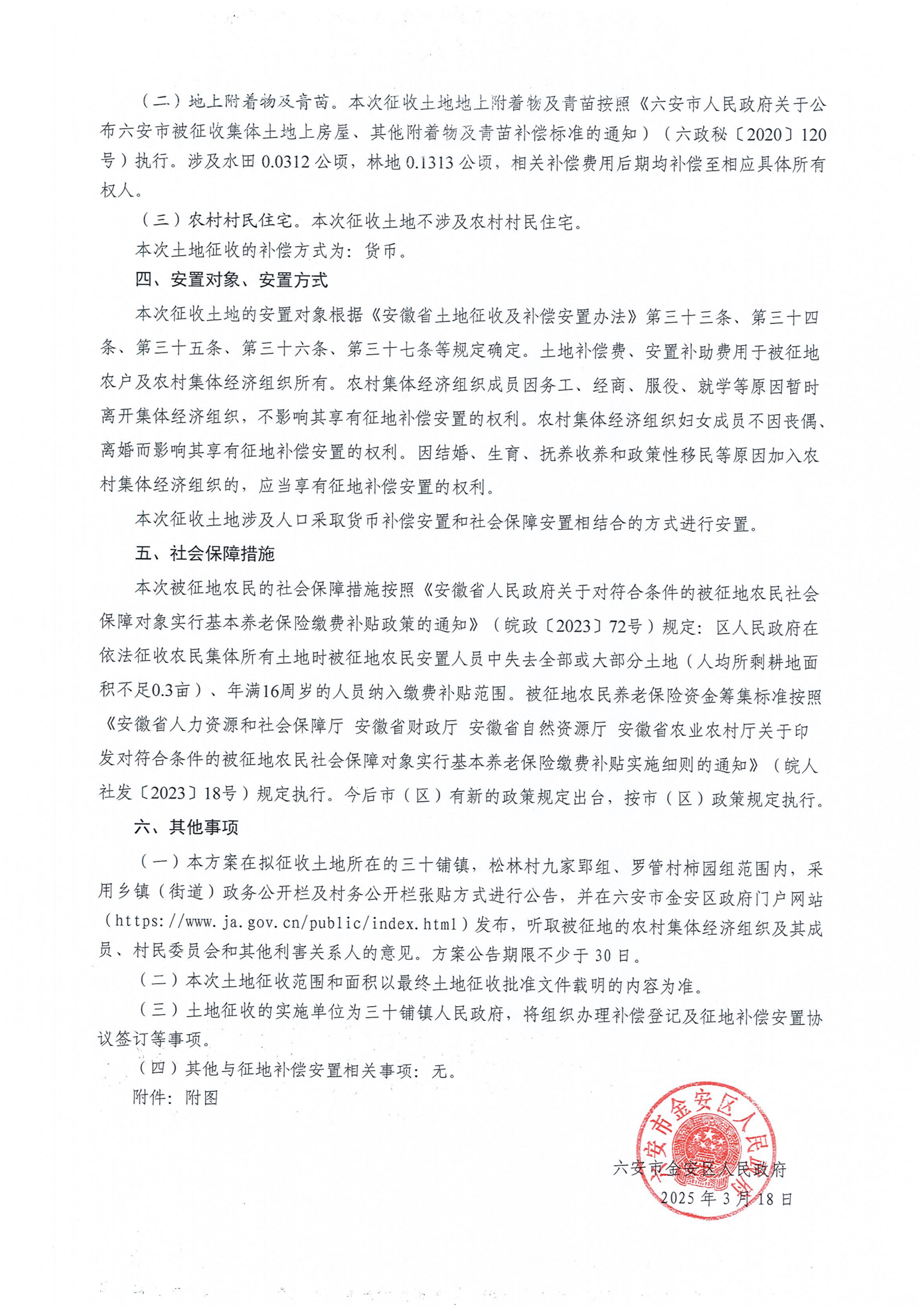 金安区人民政府征地补偿安置方案公告(金安征补安置[2025]2号)