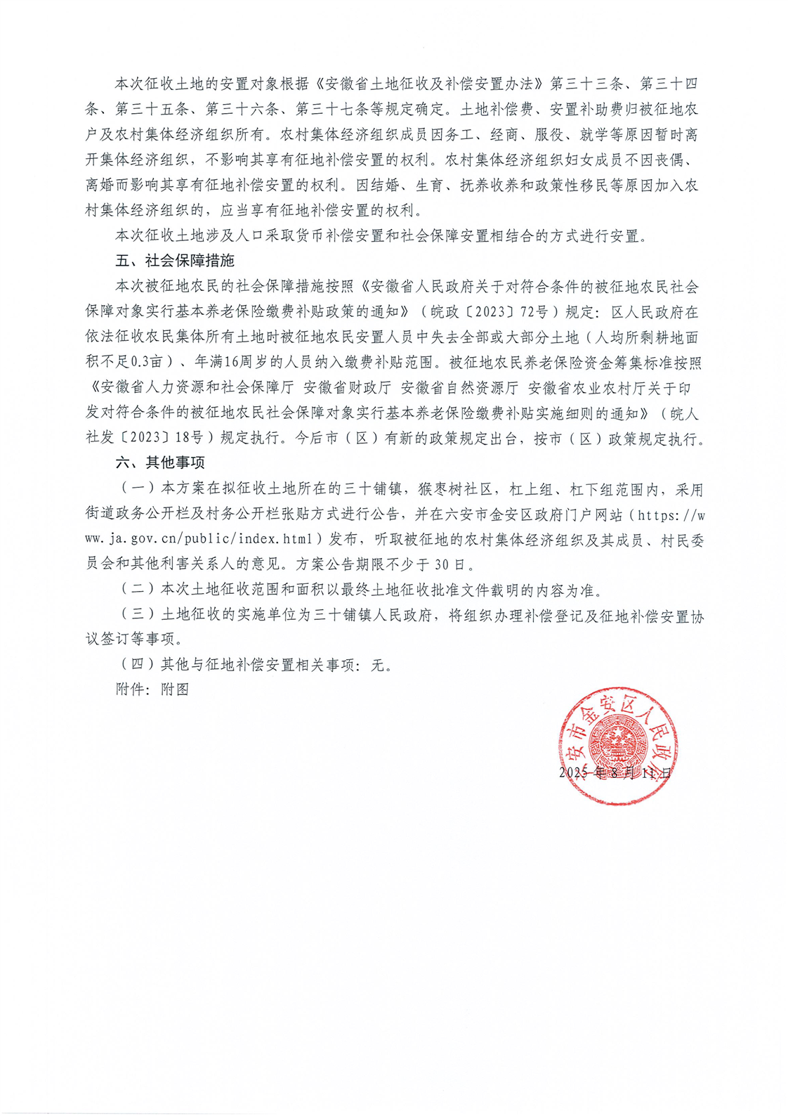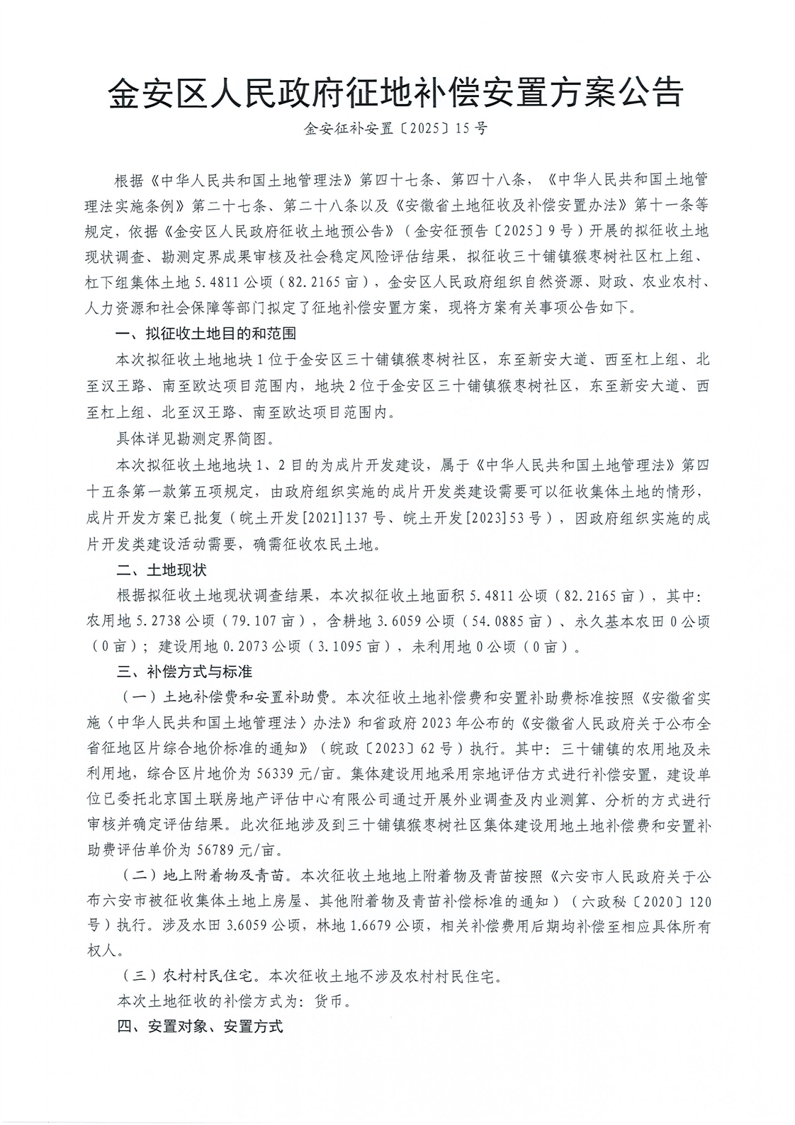 金安区人民政府征地补偿安置方案公告(金安征补安置[2025]15号)