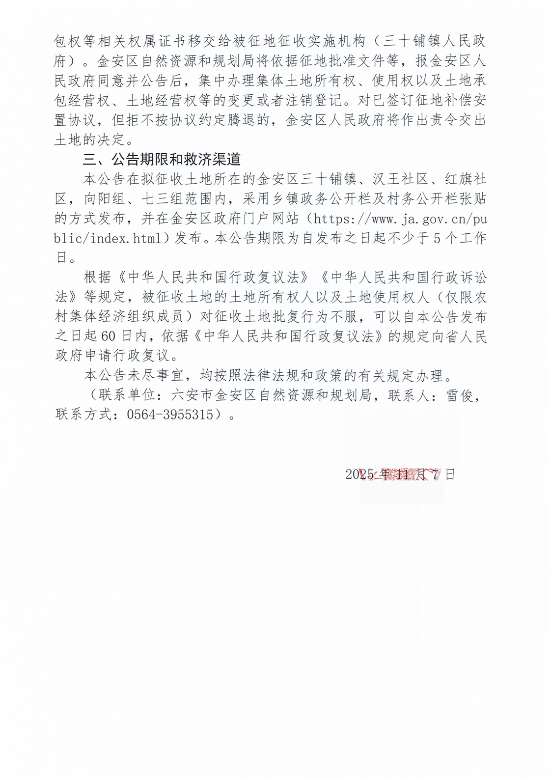 金安区人民政府征收土地公告(金安征地告〔2025〕22号)