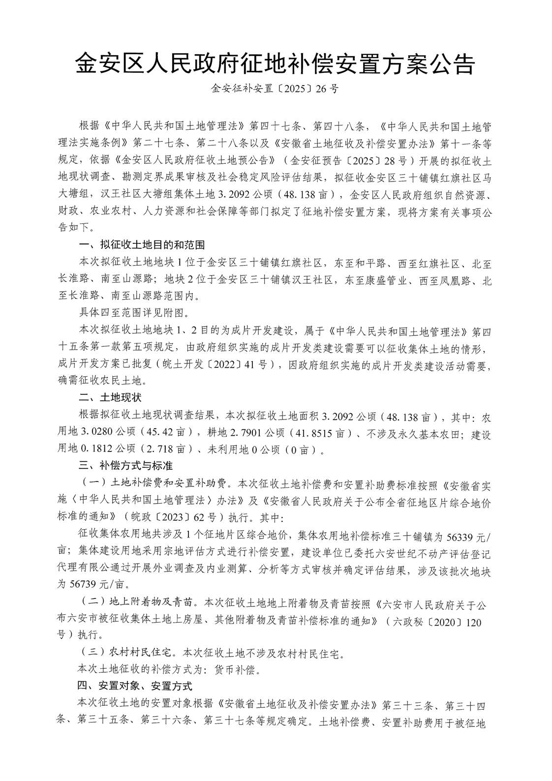 金安区人民政府征地补偿安置方案公告(金安征补安置[2025]26号)