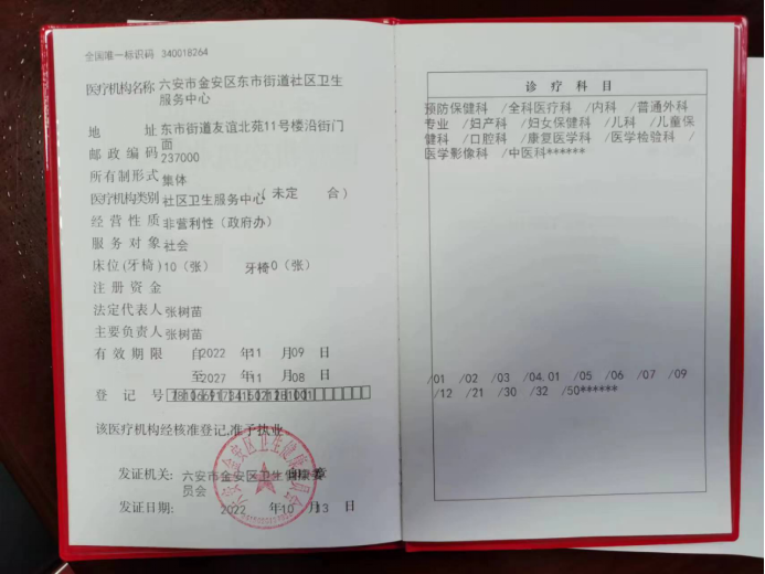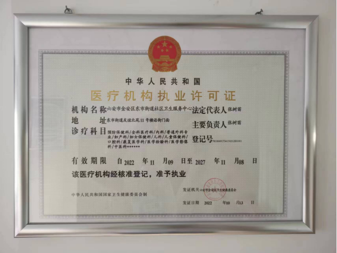 开设有内中医康复科、慢性病管理门诊、检验科、放射科、彩超心电图室、妇幼保健科、预防接种门诊等多个科室。