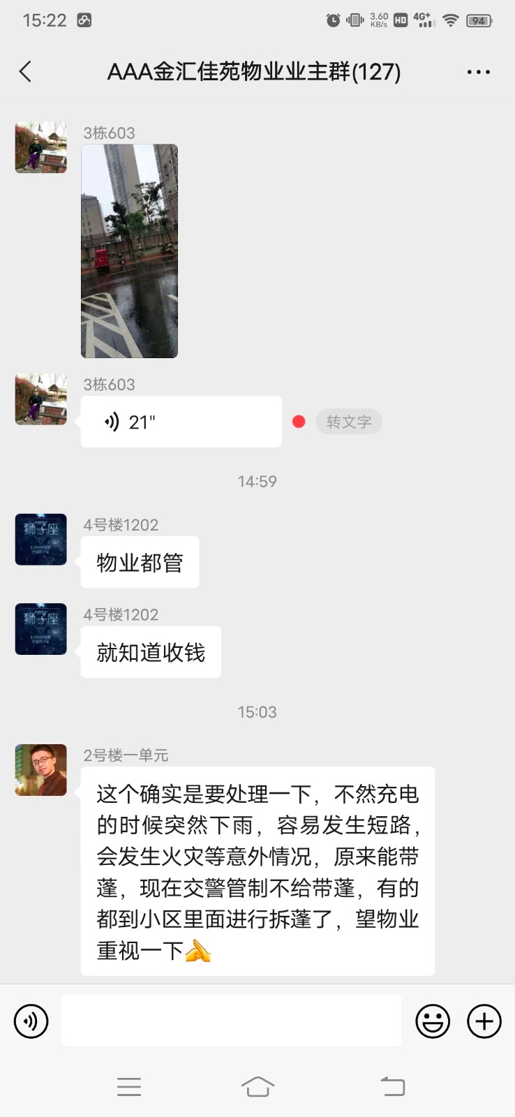 三十铺镇巢湖路金汇佳苑小区物业不作为,从20年业主们就反映小区电瓶车棚不够用,业主电瓶车天天饱受风吹日晒,导致业主财产严重损失。业主们在物业群中多次反馈增设电瓶车棚,物业一度无视,不予理睬; 20年物业仅在小区西边墙上设置电瓶车充电桩,并未建设电瓶车棚。21年雨水天气特别多,导致业主们的电瓶车老化,破损等,业主曾多次在物业群中反馈,要求物业增设电瓶车棚,物业仍置之不理,更不给业主们一个说法,充分体现了只收钱不作为的乱象!再次反馈到市单位相关部门,希望得以解决,若还无结果,金汇佳苑小区业主将会联名举报、更换本小区物业!