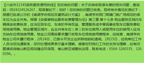 | 受理单位: | 金安区政府 | 处理状态: | [已办结] |