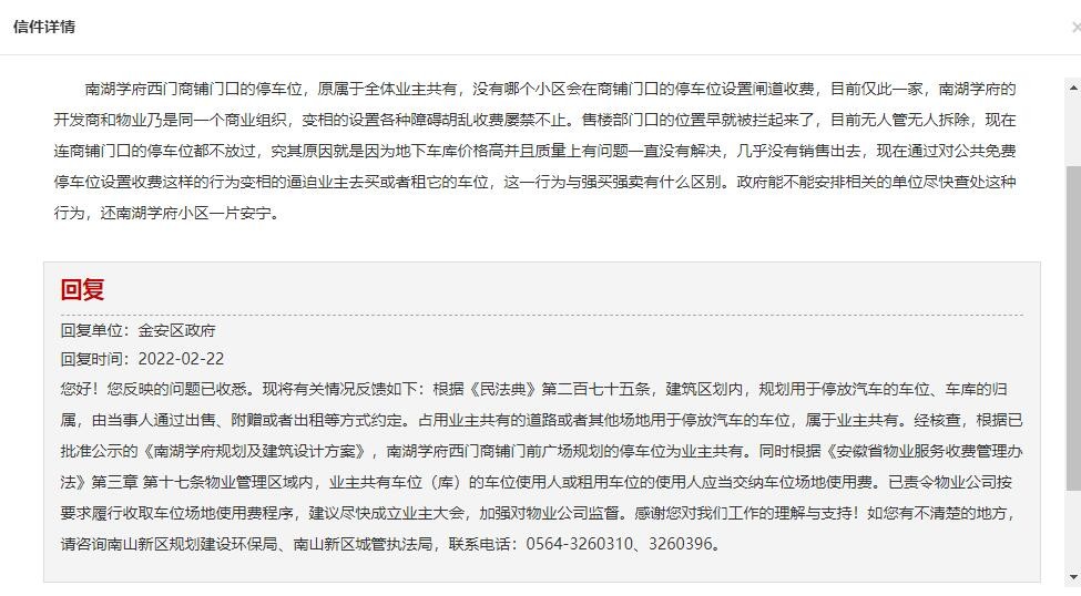 如题 如图 政府屡次强调南湖学府西门外的停车位为业主共享,物业与开发商不得违规非法禁止业主使用此停车位,现物业又违规操作,烦请政府领导重视及时解决。