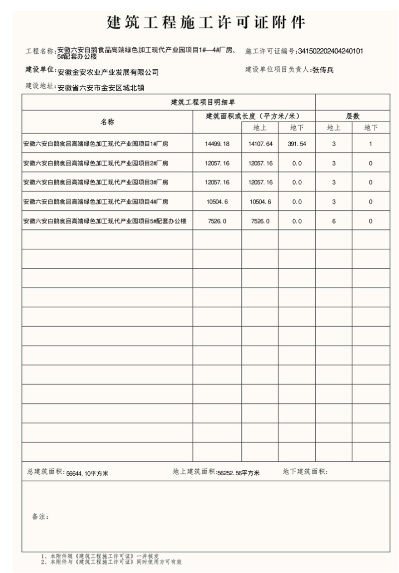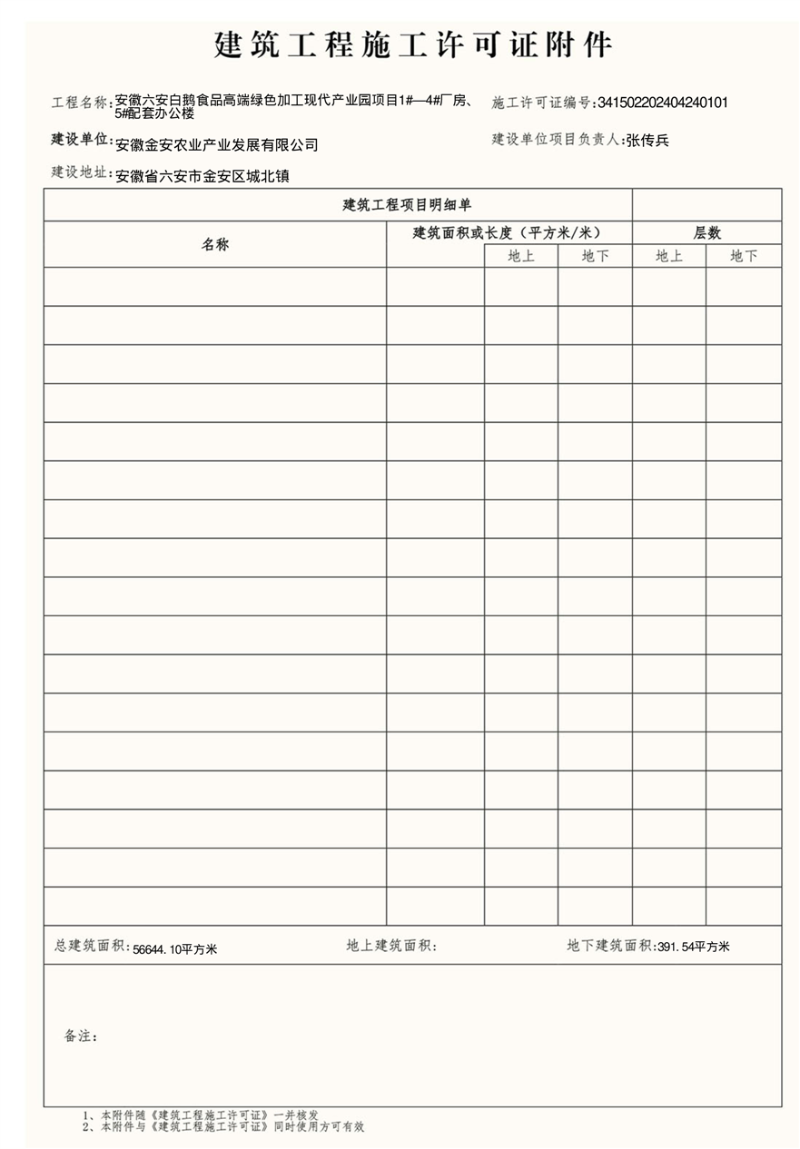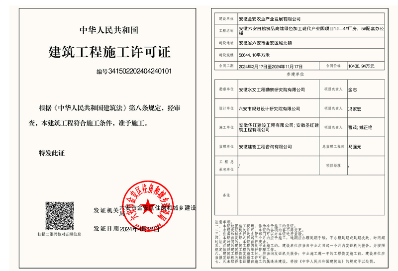 六安白鹅食品高端绿色加工现代产业园项目施工许可证