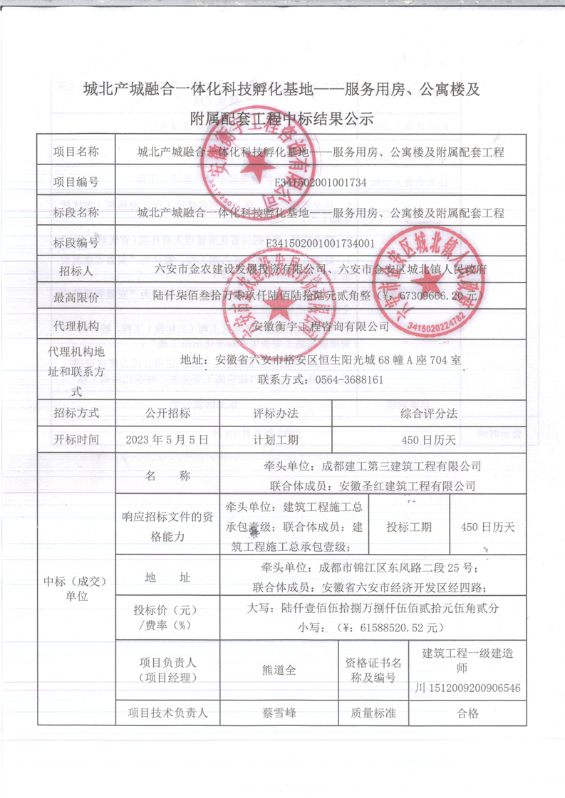 中标结果公示