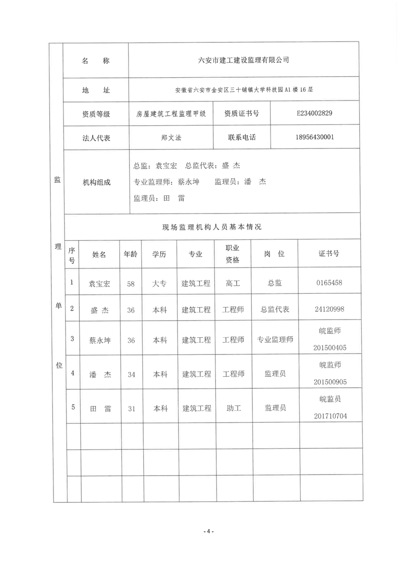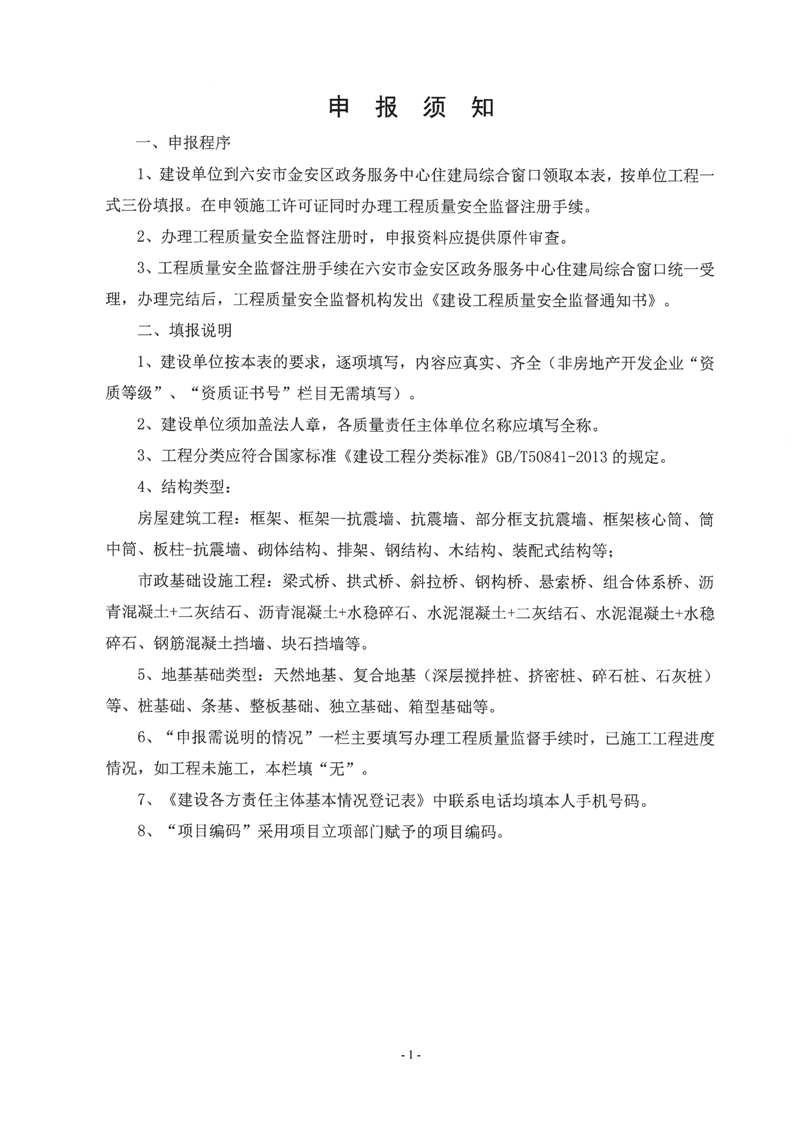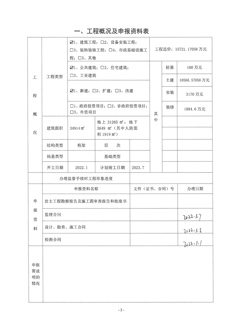 重大建设项目质量安全监督信息表