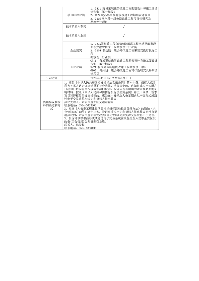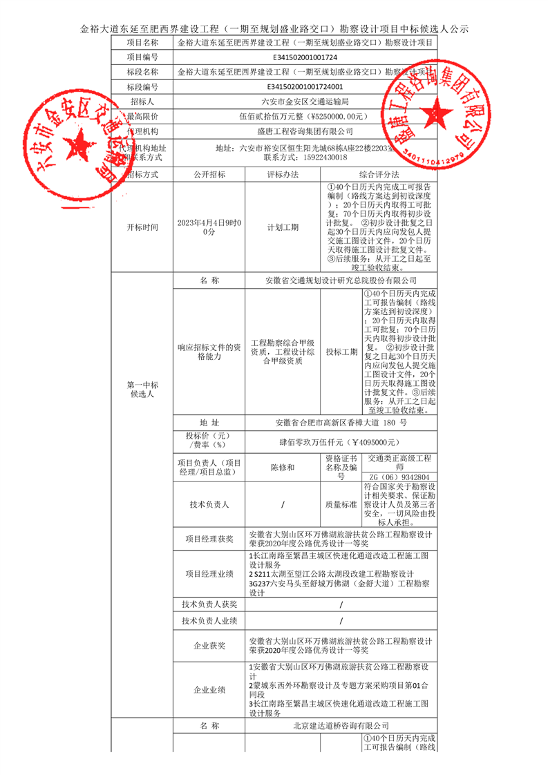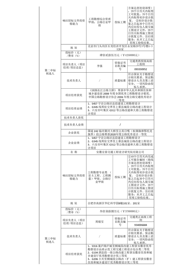 中标候选人公告