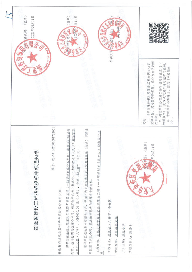 工程中标通知书