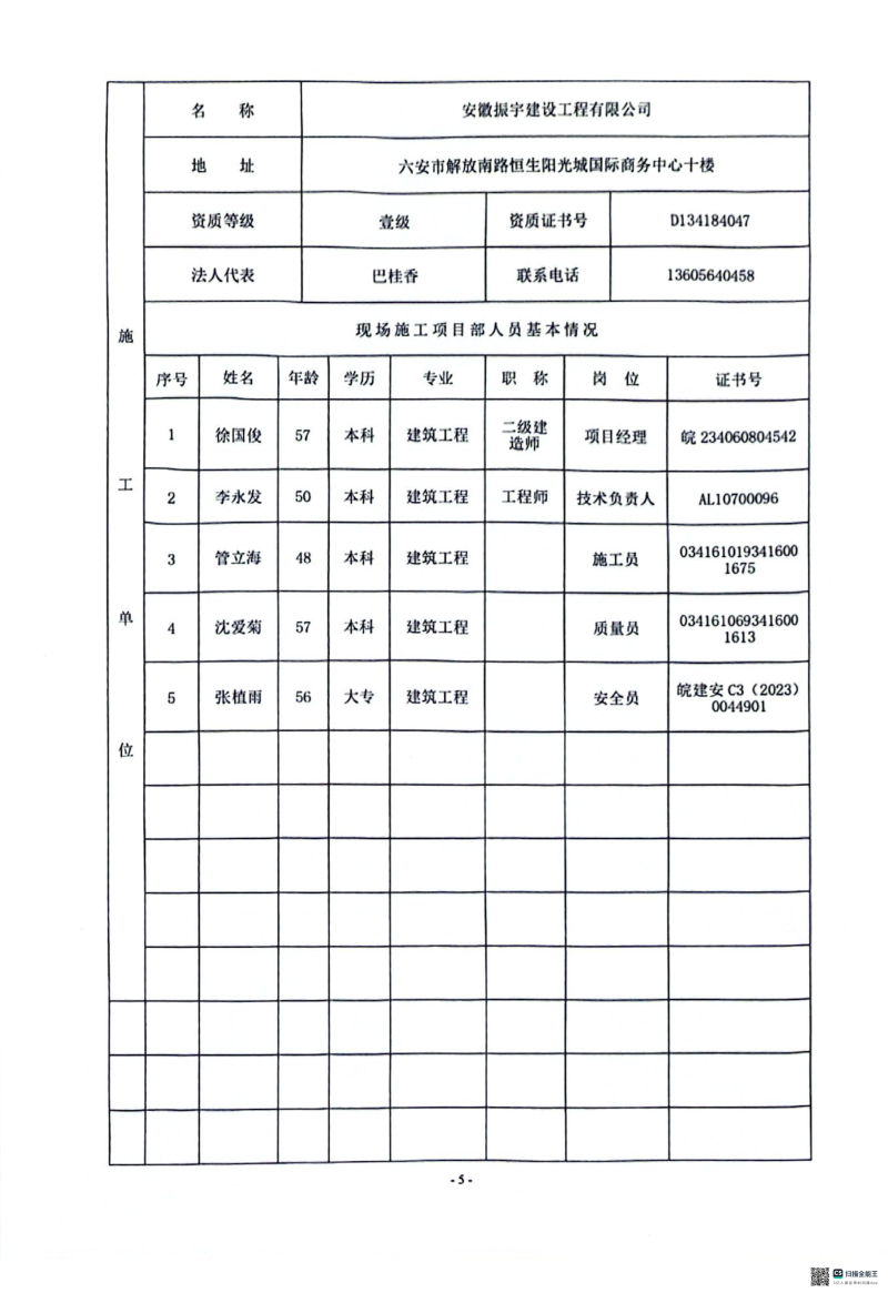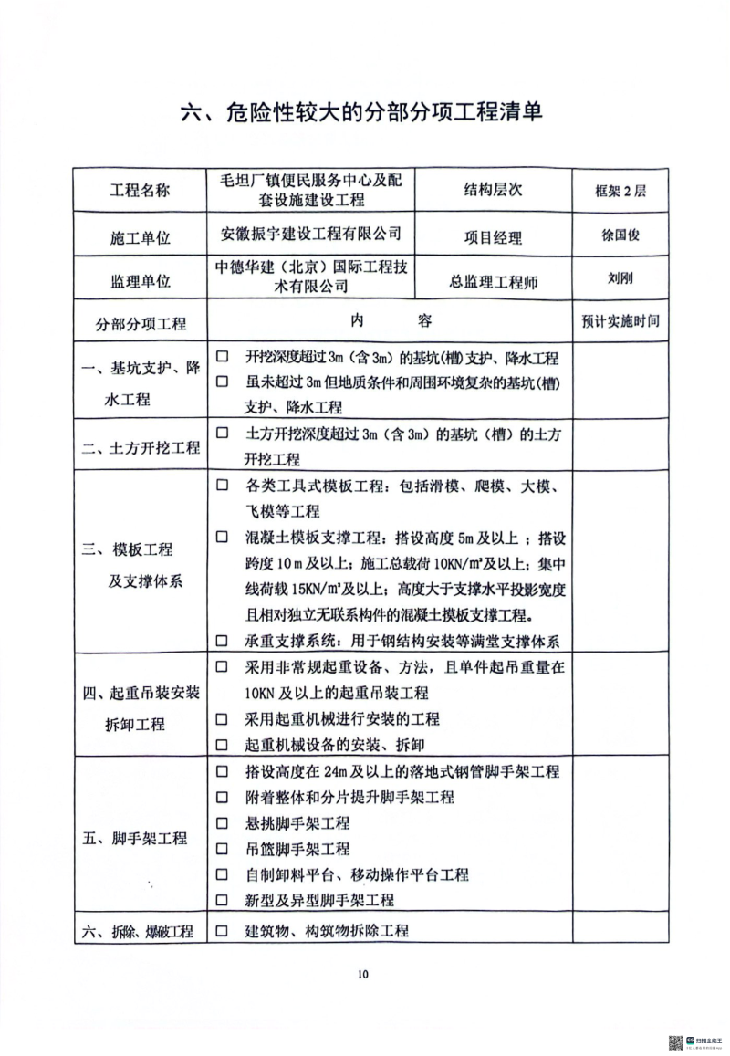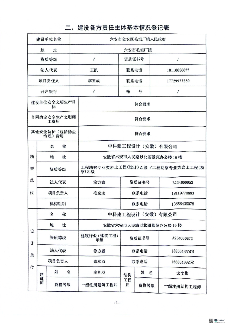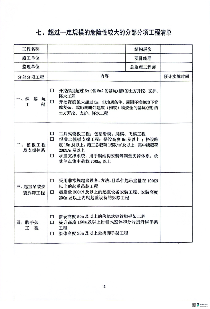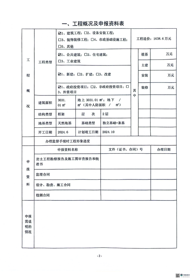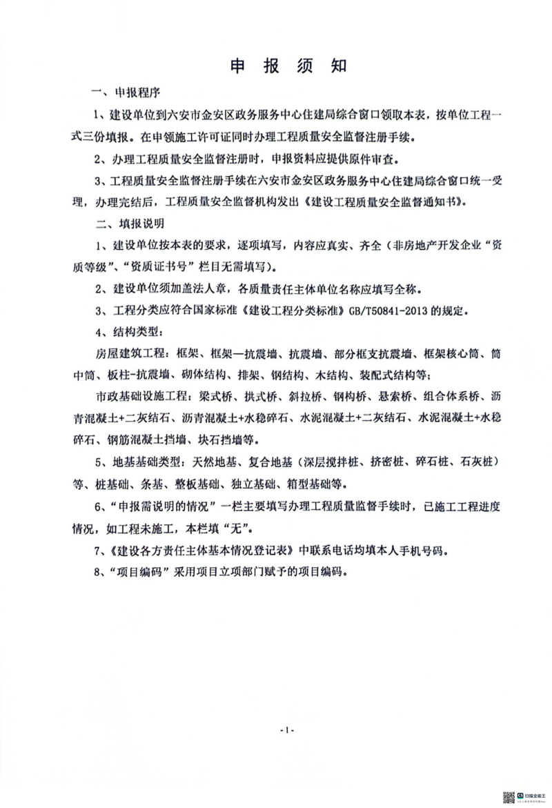 质量安全监督信息表