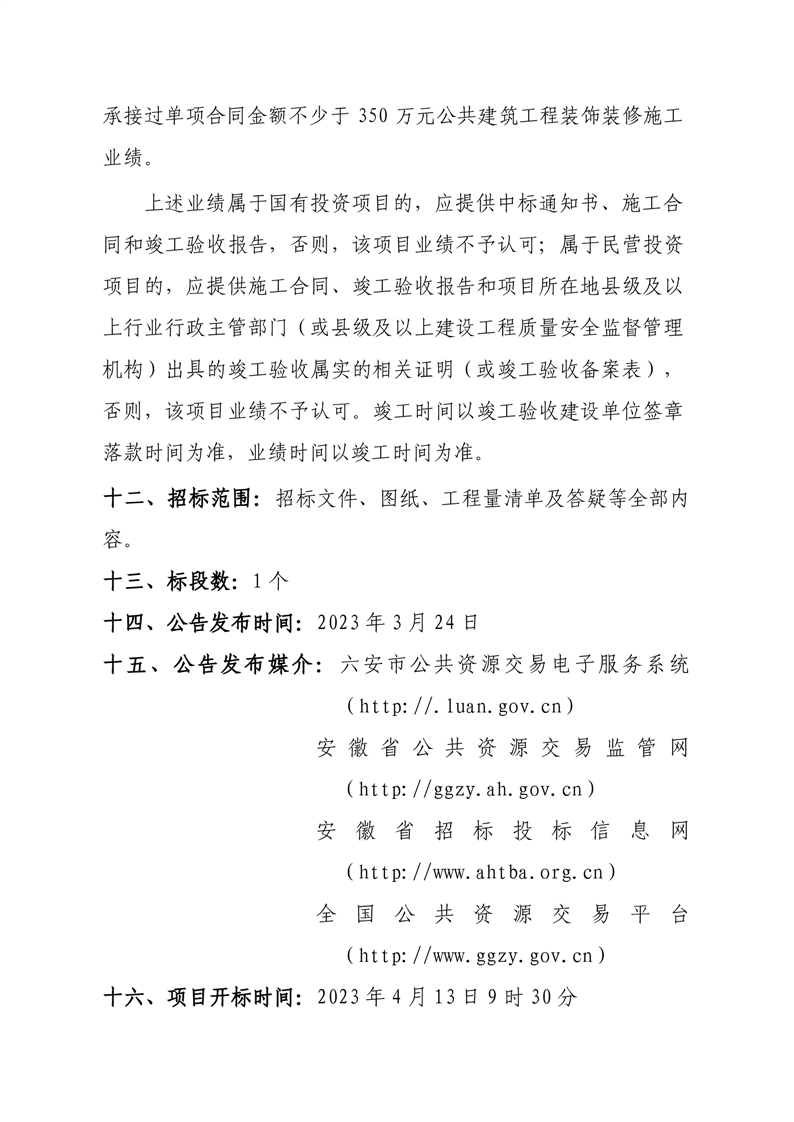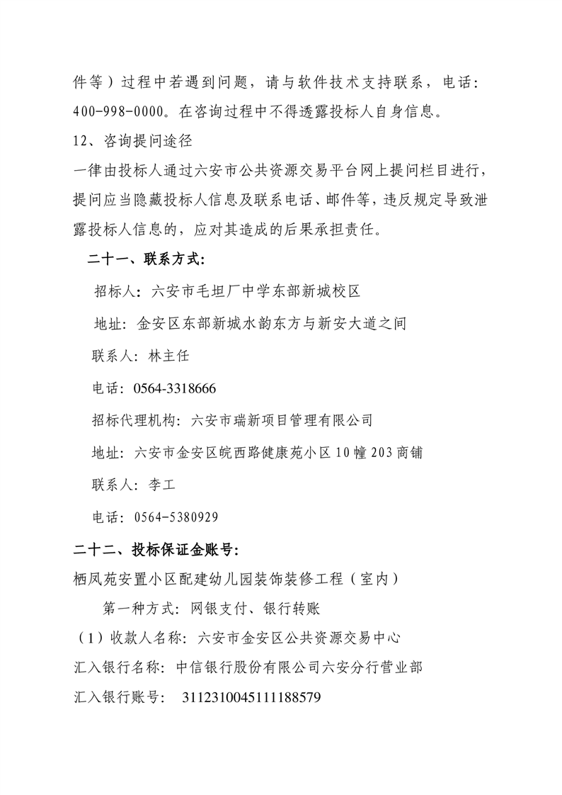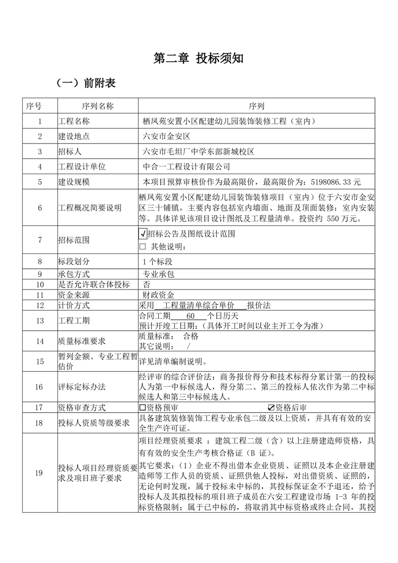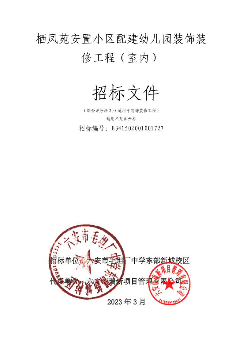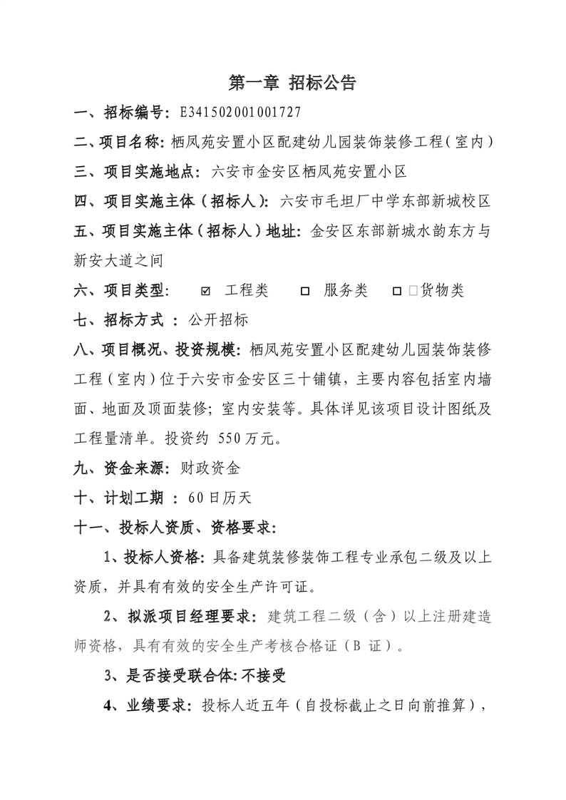 栖凤苑安置小区配建幼儿园装饰装修工程(室内)的招标文件