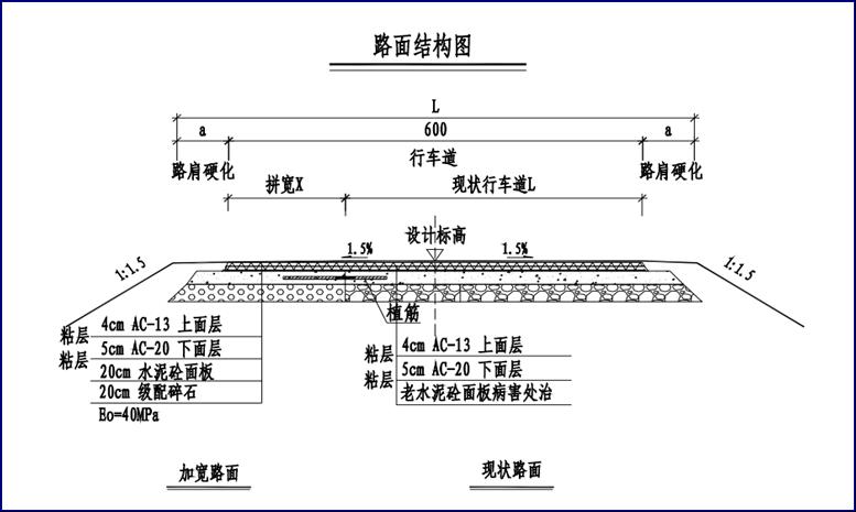 本项目路线道路现状为水泥路,路面宽 4.5.0-10.0 米,板厚约 20cm, 道路现状板块总体良好,局部出现断板、破碎、裂缝等。道路穿集镇而过,本次设计主要内容为道路病害修复后整体加铺 9cm 沥青混凝土罩面。