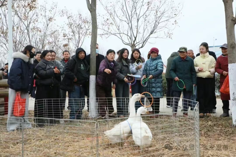 活动现场设置了农产品展示区,淠东乡特色农产品集中亮相,通过直观呈现让参与群众和企业深入了解本地优质货源优势。政策咨询专区内,工作人员围绕电商创业扶持、农特产品产销对接以及道路交通、医保缴纳等群众关心的政策问题,为辖区群众和创业者提供一对一专业解答,助力大家明晰各项政策导向。趣味十足的投壶、套鹅、“捞锦鲤”等游戏环节则让现场氛围更加热烈,有效拉近了政府与群众之间的距离。