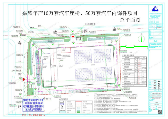 嘉耀年产10万套汽车座椅、50万套汽车内饰件项目规划预方案批后公告