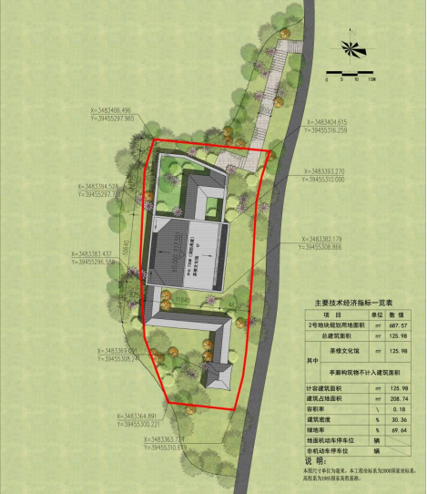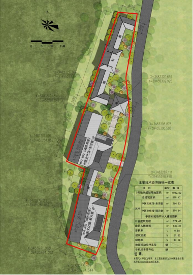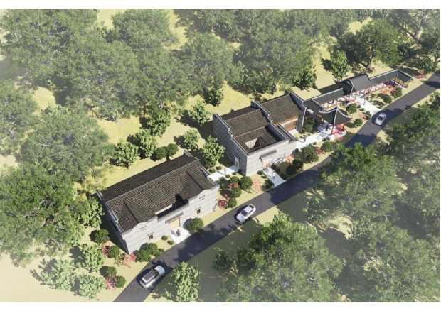 杨岩村乡村振兴文旅项目地块一、地块二、地块三工程设计方案已经区生态环境保护(自然资源和规划)委员会办公室研究同意,位于横塘岗乡杨岩村大平地组。地块一历史文化馆建筑层数为地上1层,占地面积3935.63㎡,建筑面积1078.79㎡;地块二茶修馆建筑层数为地上1层,占地面积687.57㎡,建筑面积125.98㎡;地块三中医馆为地上2层,占地面积1032.52㎡,建筑面积579.47㎡。