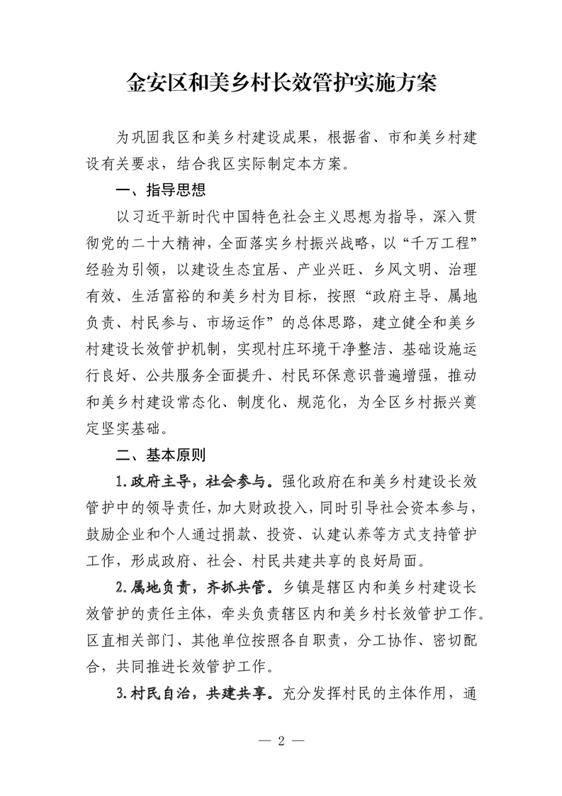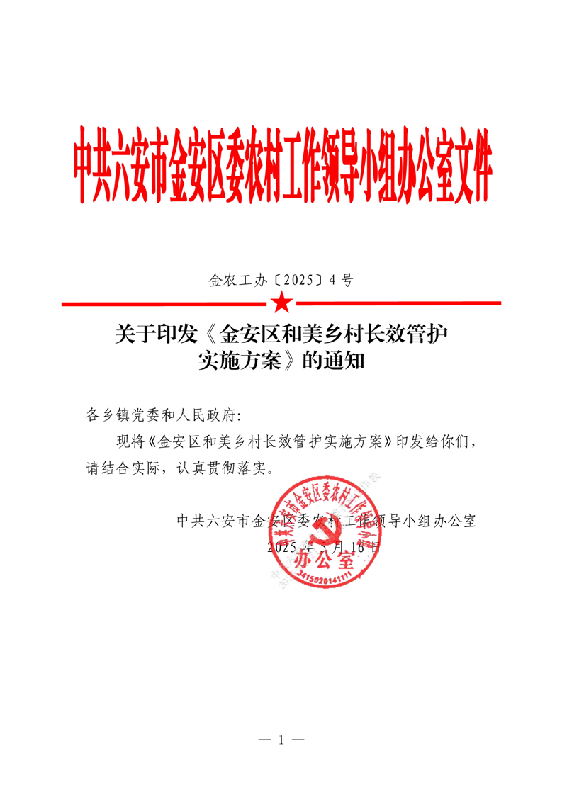 关于印发《金安区和美乡村长效管护实施方案》的通知